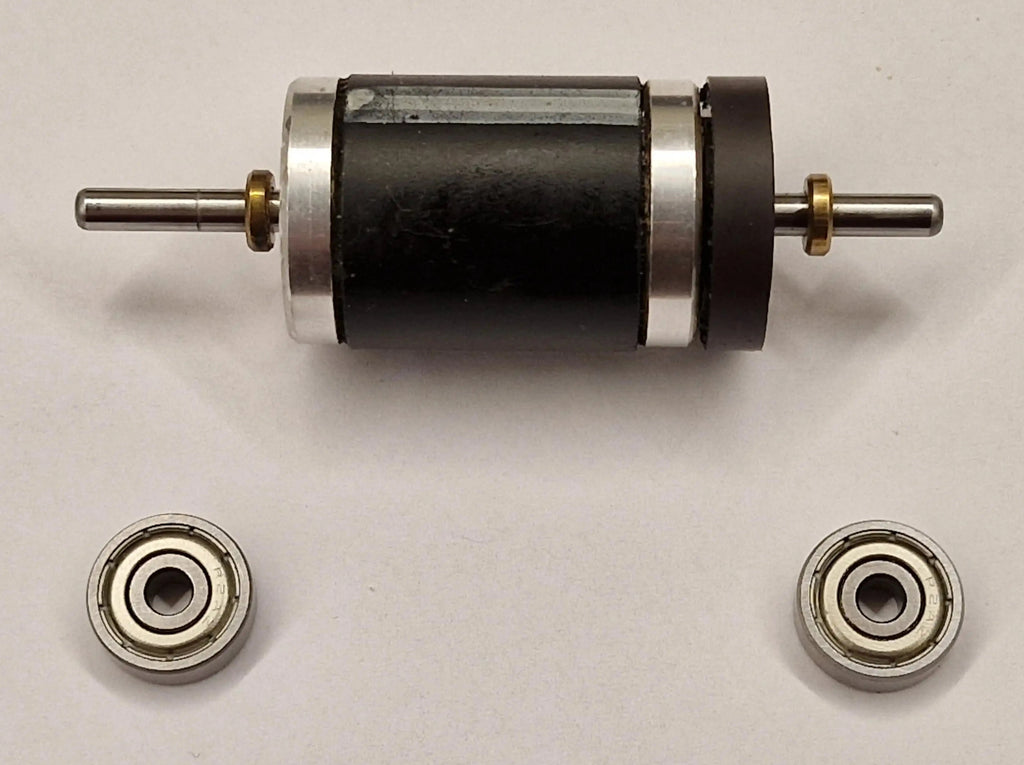 Ball bearings for electric motor with 1/8" (3.175mm) motor shaft that is installed on the smaller wheel motors.