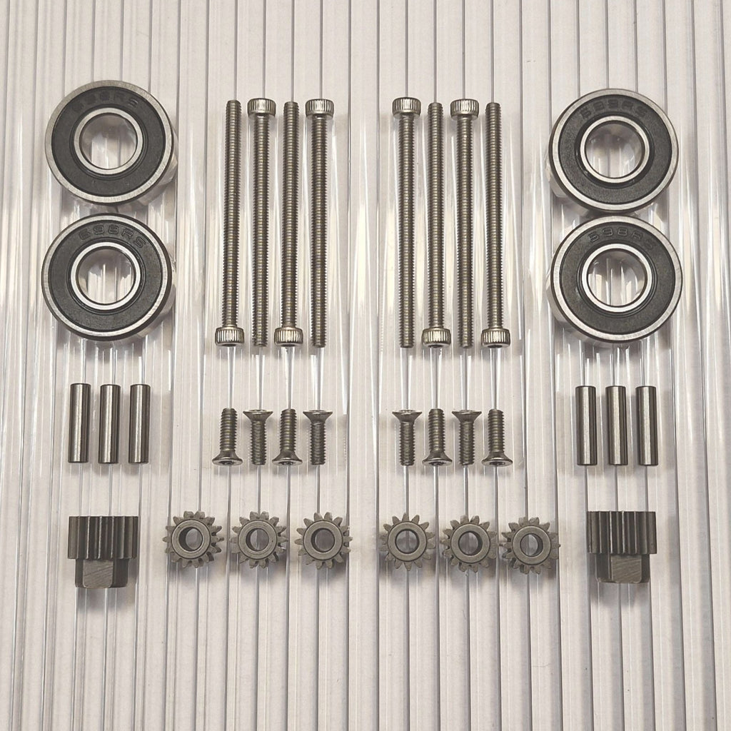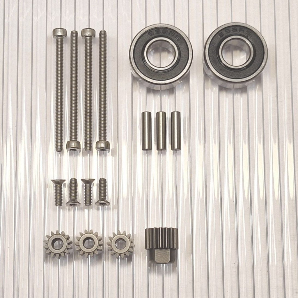 Los engranajes están fabricados de acero templado de alta calidad. Se incluyen nuevos pasadores para los engranajes planetarios más cercanos a la rueda. Tornillos inoxidables con empuñaduras de llave torx y allen que no se deslizan.